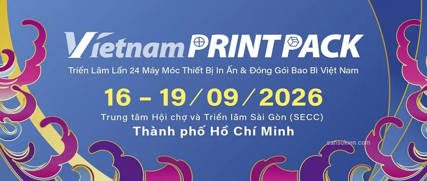 Triển lãm quốc tế ngành công nghiệp đóng gói bao bì và in ấn (Vietnam PrintPack) sẽ diễn ra từ ngày 16/09/2026 - 19/09/2026 tại Trung tâm Triển lãm và Hội nghị Sài Gòn (SECC). Vietnam PrintPack sẽ giới thiệu nhiều sản phẩm, công nghệ in ấn và bao bì mới nhất nhằm giúp các nhà sản xuất trong nước khám phá nhu cầu thị trường toàn cầu. Sự kiện do Công ty CP tổ chức triển lãm thương mại và quảng cáo (Vinexad) trực thuộc Bộ Công Thương và Công ty TNHH Dịch vụ Thương mại và Tiếp thị Yorkers phối hợp tổ chức, dự kiến thu hút hơn 15.000 khách tham quan chuyên nghiệp.